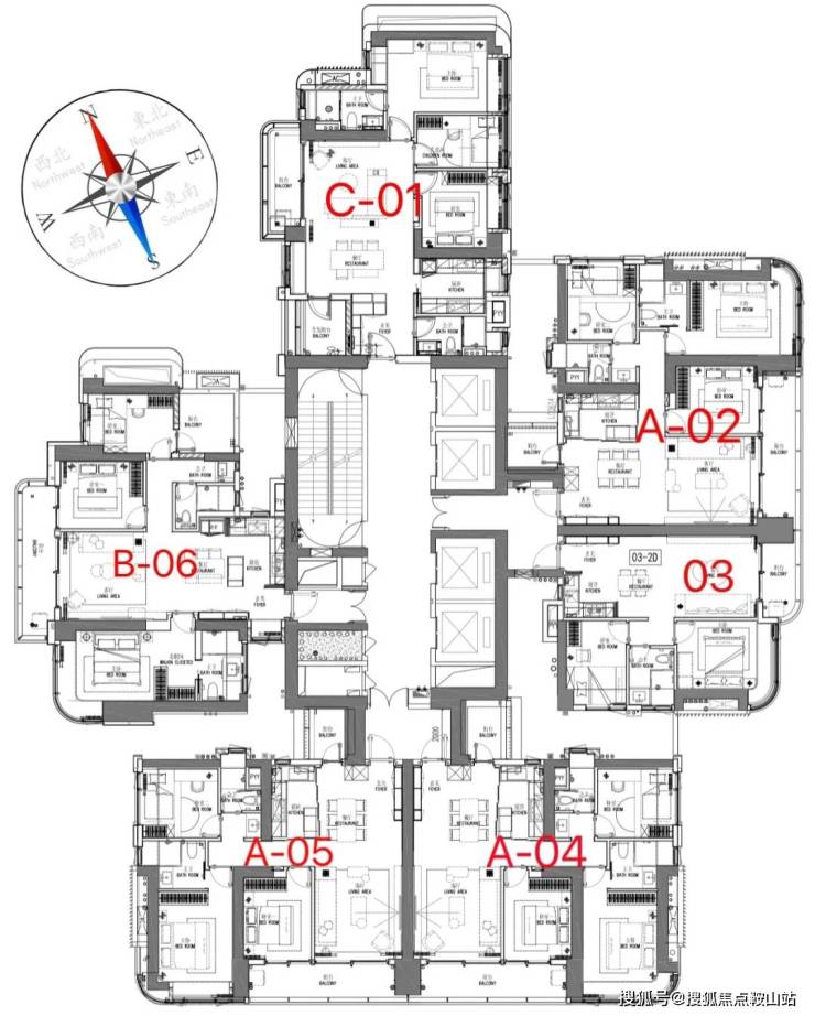 1-2单元为总高60层的商品住宅楼,4梯6户;