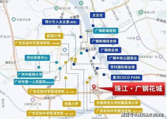 项目自身只配建了一所幼儿园,小学根据政策周边的学校,周边有东沙小学、新东小学以及广钢南区的华附荔湾小学等,具体读哪个就看交楼后教育部门的划分了。