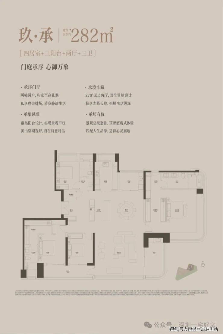 282㎡ 4房2厅3卫·三阳台(专梯专户)