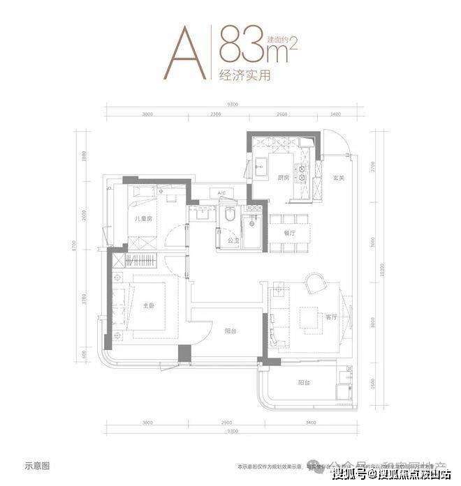 功能齐全建面约83㎡户型