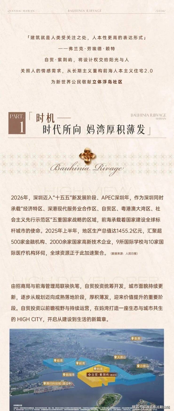 【紫荆屿】由招商局与海管理局联袂打造。建面约108/129/148㎡3-4房,全改善新规户型。坐落于“南山区前海妈湾核心片区”,听海大道旁,隶属前海深港合作区核心板块,是前海妈湾片区稀缺的纯商品房改善型新盘,由“招商蛇口与前海投控联合打造”。