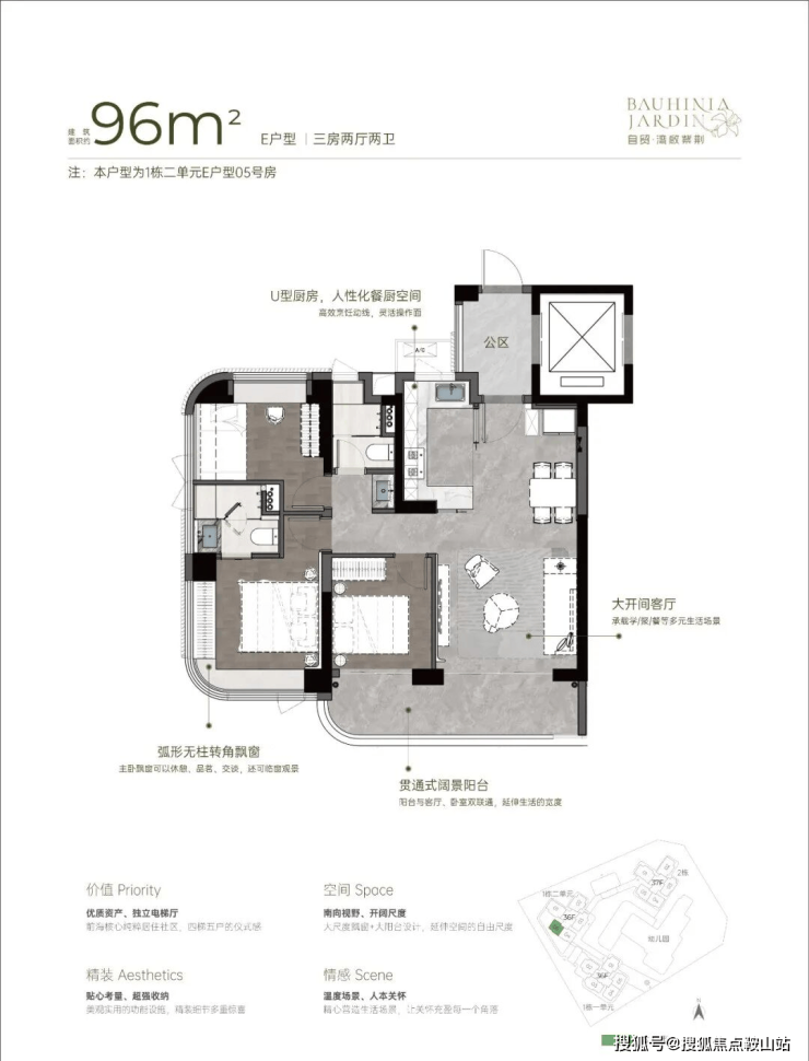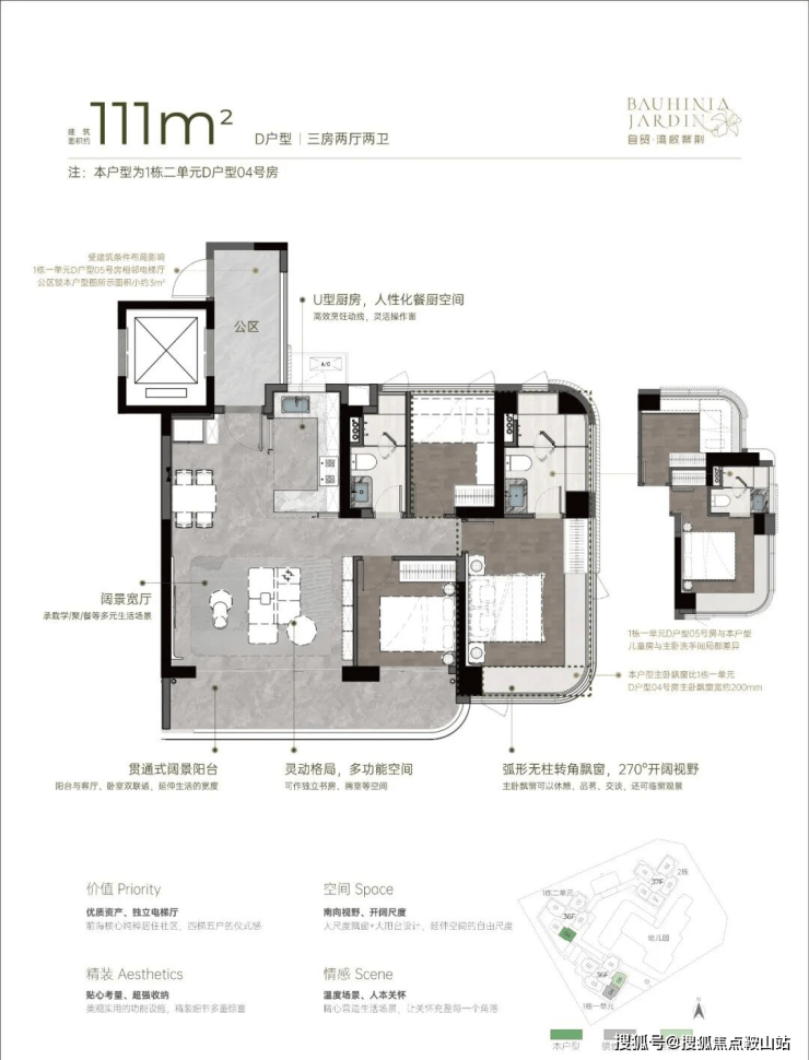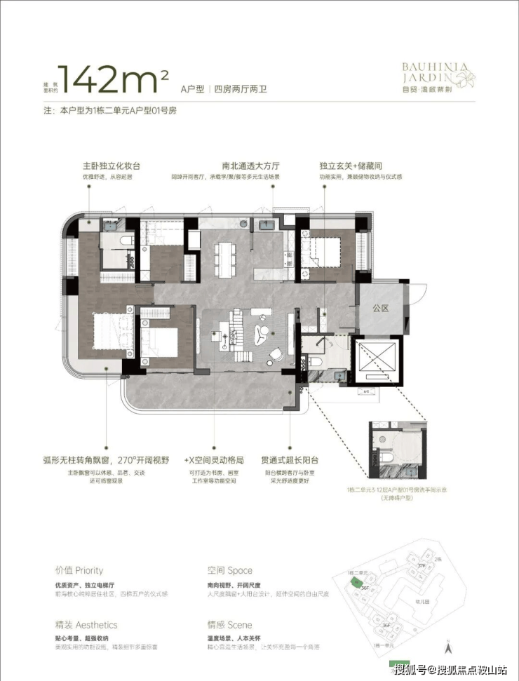 【湾啟紫荆府】全部为专梯入户且带独立电梯厅,户户带大阳台,前海新规后户型,使用率不错,大面积凸窗赠送,比较实用。