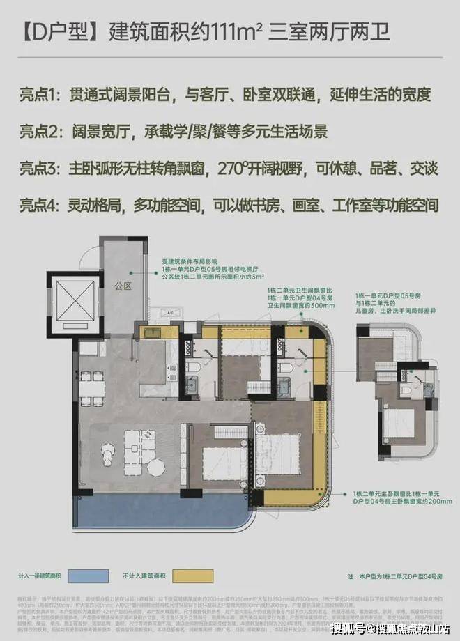 小区有485套纯住宅,车位595个,容积率5.14,共有三栋住宅,每栋做了36-37F高的4梯5户设计,每户都有专梯入户空间