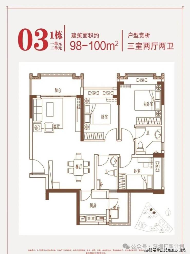 约98-100㎡三房:约3.8米阔绰大开间,视野开阔,全山景
