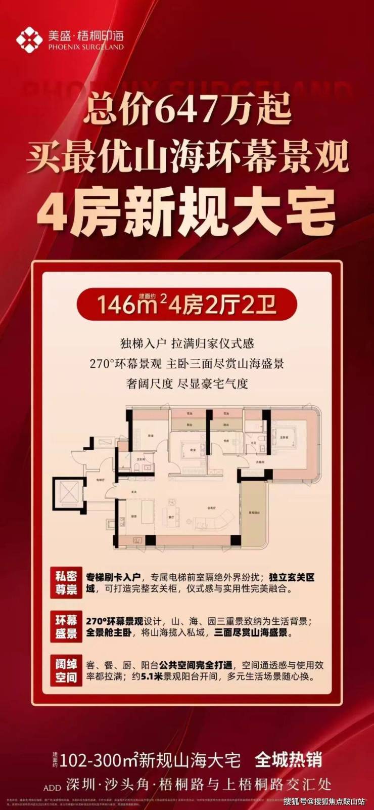 美盛·梧桐印海-项目雄踞盐田黄金中轴,坐镇沙头角核心位,北倚深圳梧桐山,南揽沙头角湾壮阔海景,以城市中心区稀缺半山人居之姿,及大匠之力精琢打造,生动诠释“出则繁华,入则宁静”的奢居理念。