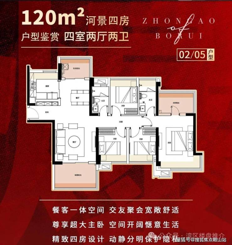 新品面积:120㎡四房两卫(南北)及89㎡三房一卫(河景)