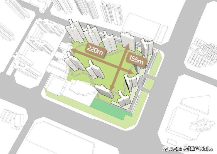 延伸至社区内部,招商青雲臺凭借大围合布局与主动控高策略,实现了令人震撼的双百米楼间距:南北最大约155米、东西最长约220米。