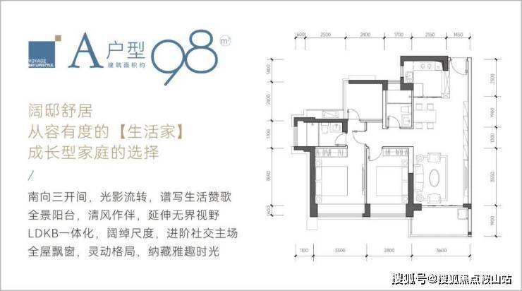 98㎡的3房2厅2卫,设计的是经典竖厅格局,LDKB一体化设计,客厅3.6米开间,三开间朝南,动静分区,3个卧室分别做到了主卧13.69㎡/次卧11.62㎡/次卧5.76㎡(包含墙体飘窗),都不用搭配飘窗做床,L型厨房,卫生间干湿分离,得房率约:89%(包含赠送),西南、东南或正南朝向。