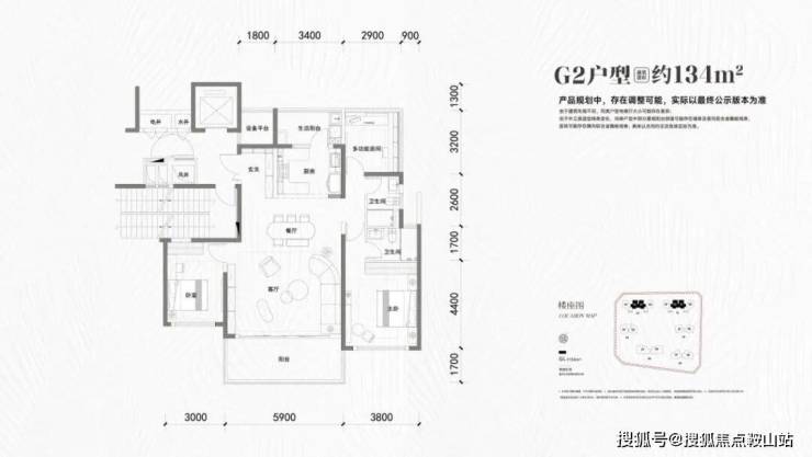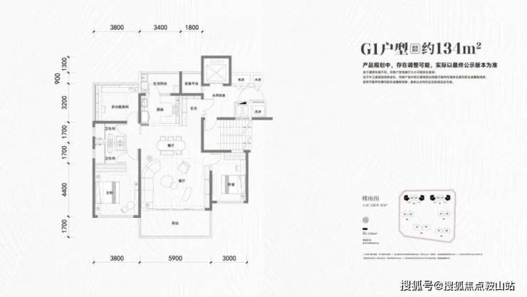 134㎡三房两厅两卫(G1户型,大边户)