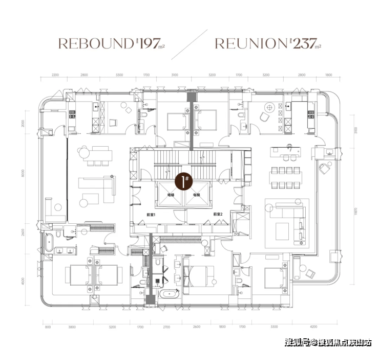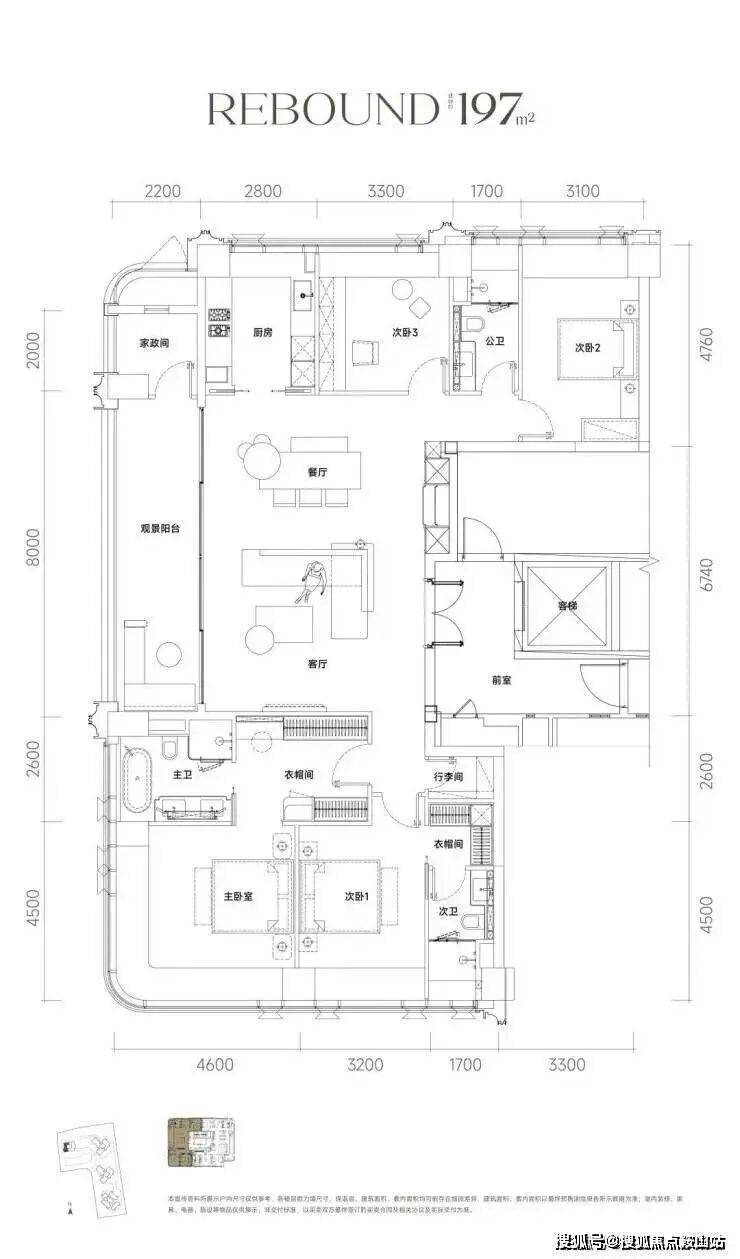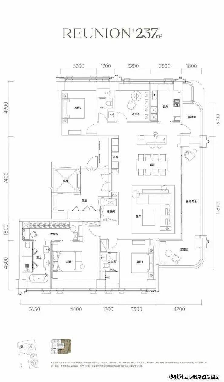 主力户型为197-235㎡大平层,主打T2/T3楼型。