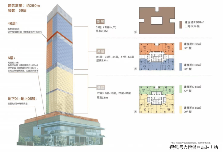 楼层高:59层(低区8-31层,高区33-58层避难层20/32层)