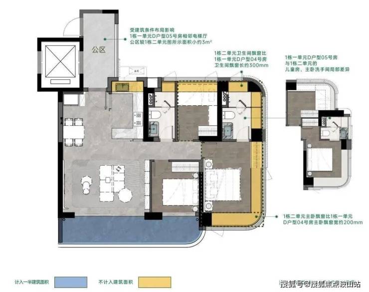 包括建面约 142㎡南北方厅阔景四房