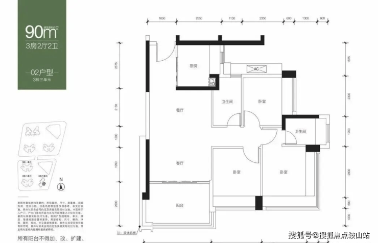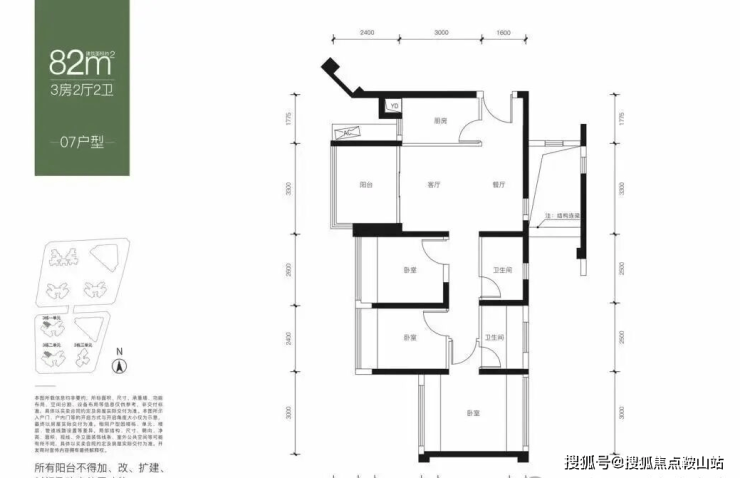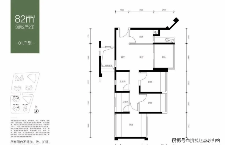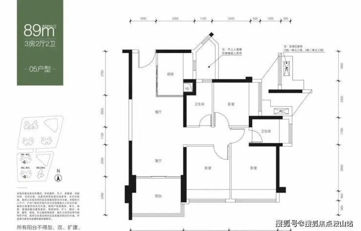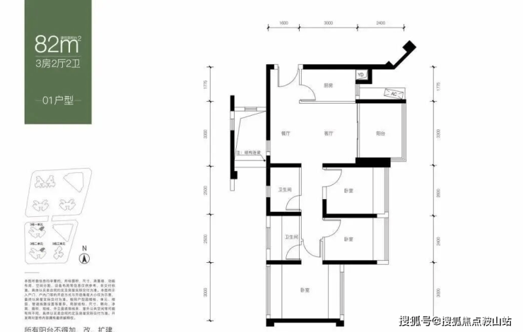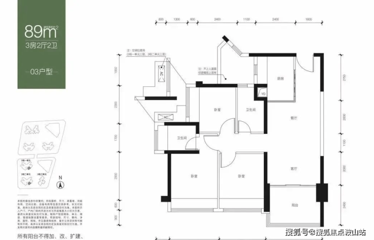 【面积】:约82-89㎡3房2卫