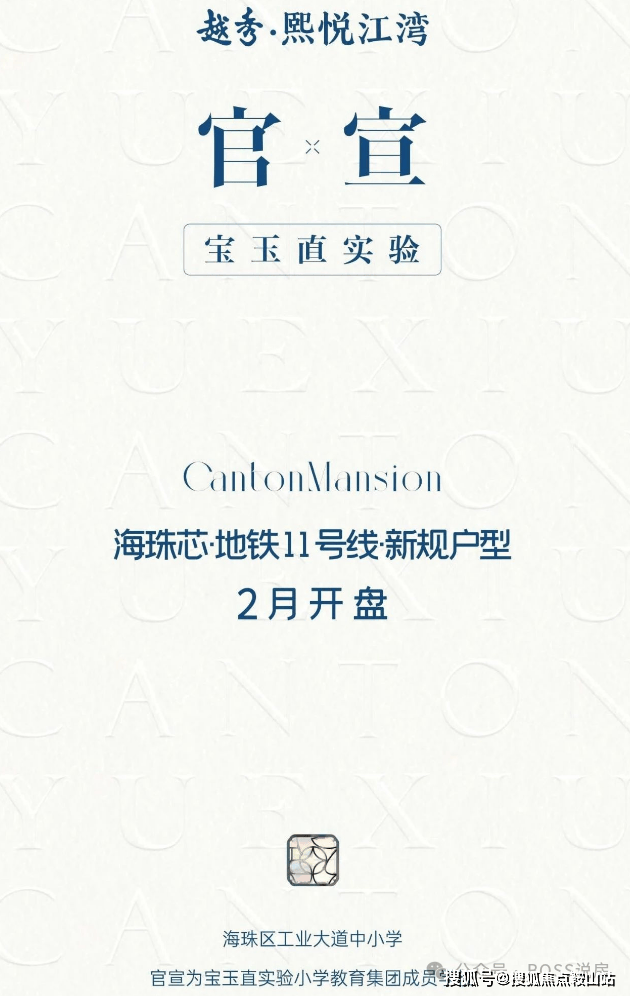 目前项目正式官宣了小学是海珠区工业大道中小学,并且纳入宝玉直实验小学教育集团成员学校,计划更名为广州市海珠区宝玉直实验星悦小学。