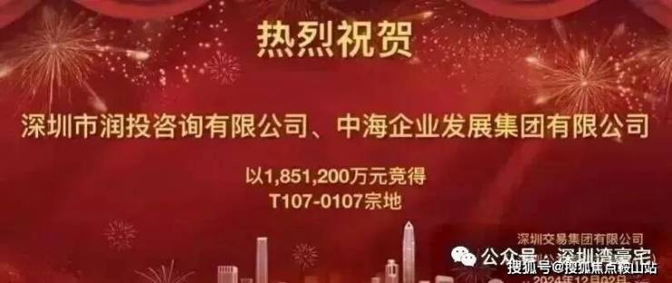 南山区粤海街道的T107-0107地块于2024年12月2日由华润和中海以185.12亿联合拿下。