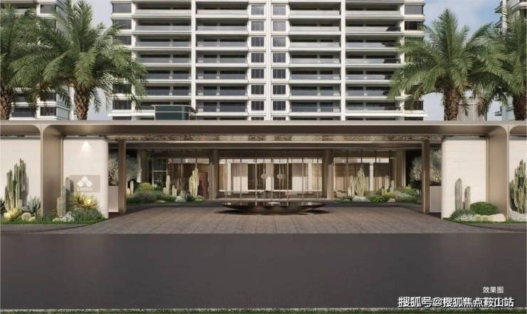 •一进:酒店式归家 | 近 70 米长弧形落客门廊,围合仪式感入口前院