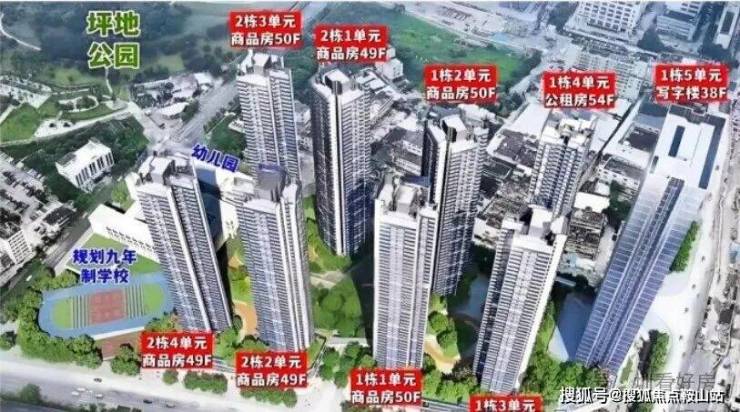 创城云璞花园,由创城集团打造,原是坪地街道冠云片区城市更新项目,分2个地块打造,有2条空中连廊相连,总占地面积约3.78万㎡,总建筑面积约38.8万㎡,计容建筑面积约31万㎡,容积率8.2,绿化率40%,共由8栋总高49-54层的住宅组成,其中1栋1/2/3单元商品房50F,2栋1/2/4单元商品房49F,2栋3单元商品房50F,1栋4单元公租房54F,另外1栋5单元写字楼+酒店38F,还规划有1所幼儿园。