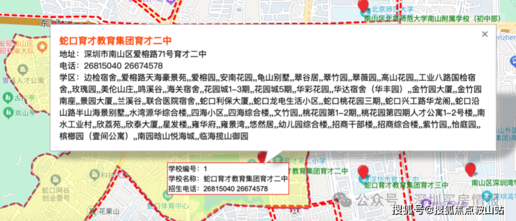 对应蛇口育才教育集团育才二中、南山区深圳大学附属教育集团后海小学。