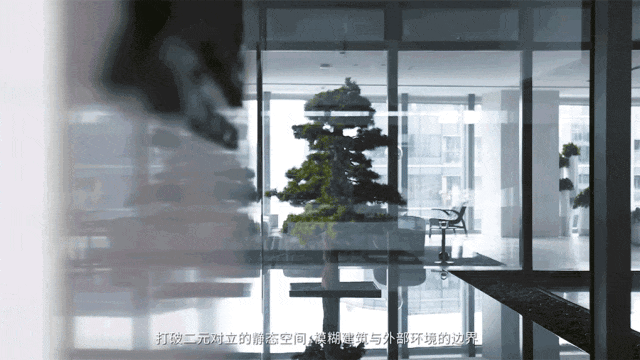 与一楼大堂的空间延伸。这是很聪明的设计,有效的“拉阔了”私家园林的空间力量,约10.2m极致挑⾼⼤堂与超白玻璃的应用,模糊了室内外的边界,亦待大堂亦待园林感。颇有些迈阿密酒店和顶豪生活气场。▽
