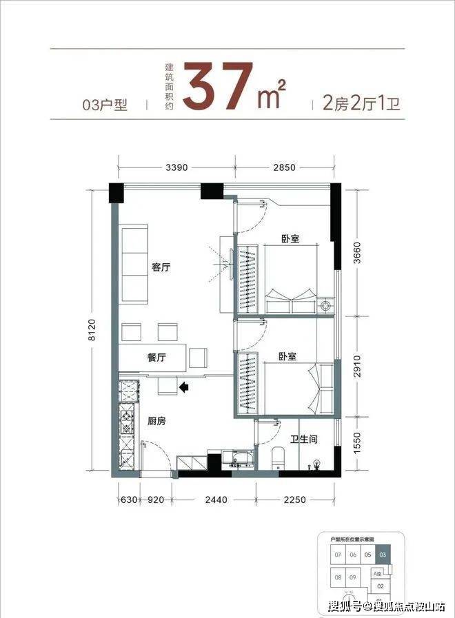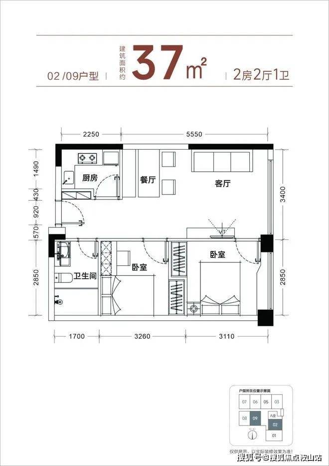 主力为37㎡两房,实际室内实用面积54-63㎡,实际使用率达145%-170%