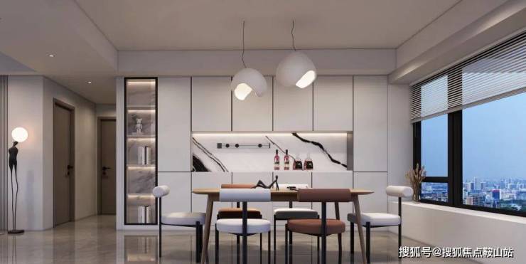 紧接着,便是约3.7米开间的餐厅内,客放置一张8-12人的大圆桌、打造一处餐边柜,空间仍有余量。