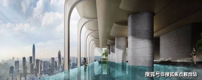 云端会客厅——全国首创约150米高空会客厅,约150米高空,打造了一处连接A、B、C三栋塔楼,面积约6000㎡的业主共享云端会客厅。涵盖无边际恒温泳池、宴会厅、天际健身房等休闲运动功能,使业主在家即可享受如五星级酒店会所配置,方便、舒心。