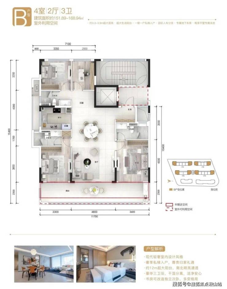 平墅:约115—168㎡ 3.9米层高平墅,南北双露台