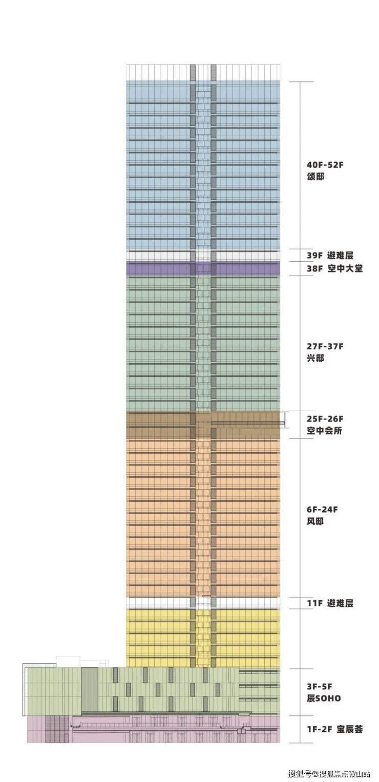 项目建筑高度约230米,是前海湾摩天建筑群中又一道独特风景线。项目建成后,