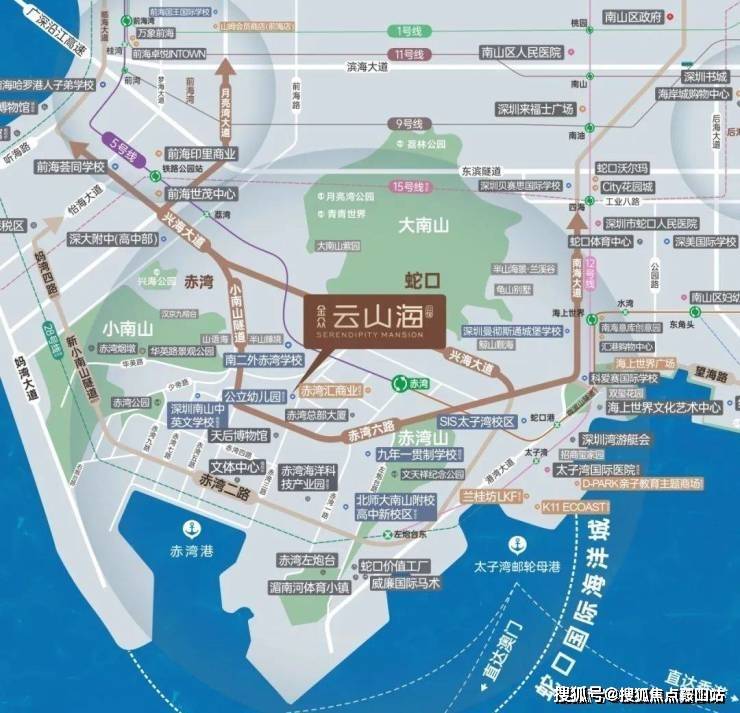 金众·云山海公馆座落于蛇口豪宅地带,属于前海合作区扩容范围,蛇口,这里是物质享受的象征,项目西邻前海,东接太子湾,后海,与三山一海为邻,就像山海之间的秘境!