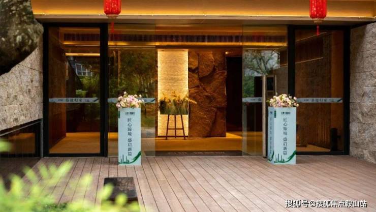 项目交付的每一栋楼,都有自己专属的铭牌,而且结合楼栋名称做了单独的造景小品。入户庭院的两侧石墙,选用日本最高规格花岗岩——庵治石整石拼接而成。