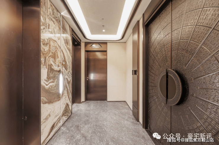 尊崇高定大堂,精研艺术与生活交融之美,雕琢金属与石材材质的自然奢华,营造艺术感的归家体验,遇鉴居者精奢高雅的审美。