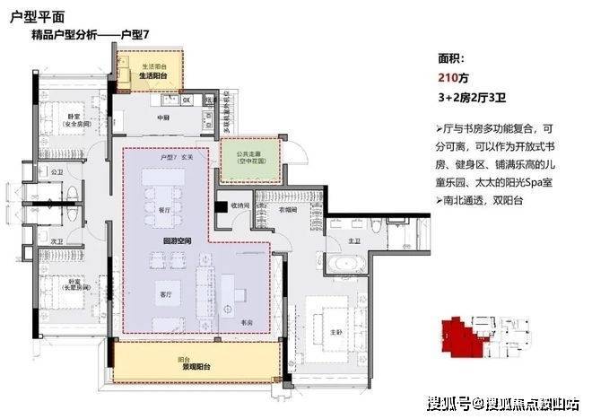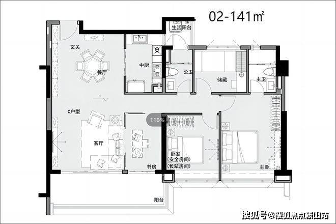 121㎡三房两厅两卫:该户型的客厅和餐厅开间宽达约4米,提供宽敞的生活功能区。灵活的空间设计可以满足不同家庭的需求,特别适合多代同堂的家庭,入户花园、影音室、琴房等空间自由变换。