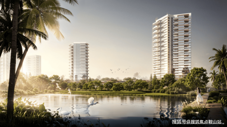 顺德澐璟身处以国际IUCN标准打造的鹭鸟主题湿地公园,宛若从公园里长出来。项目通过“引水入园”的规划,将与桂畔水脉相承,形成了外有“护城河”、内嵌中轴水景的尊荣感。