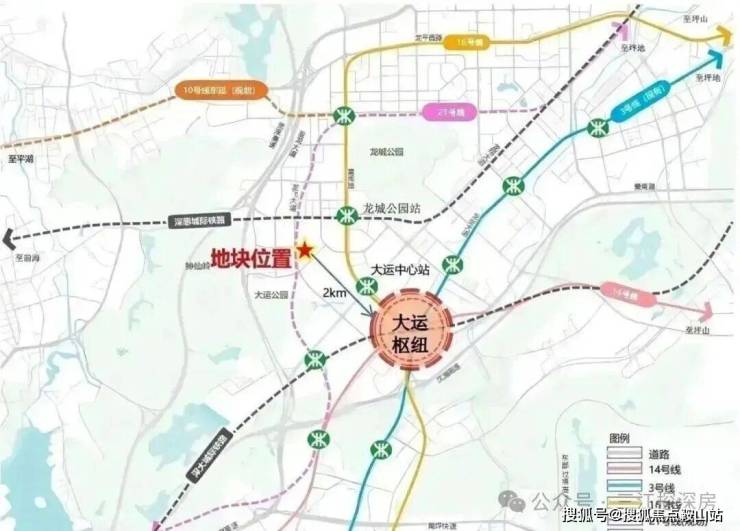 项目距离地铁16号线“大运中心站”约800米,步行约10分钟,1站可到达大运枢纽,快速换乘3/14号线,以及未来的深大城际;距离深惠城际“大运北站”约1公里,目前仍在建设当中,计划在2026年11月份通车。
