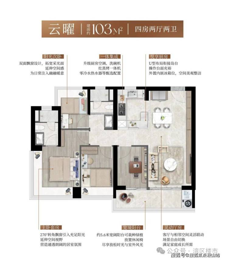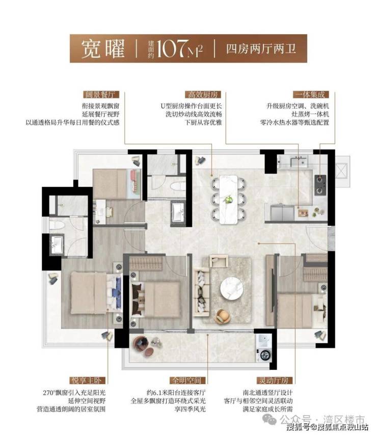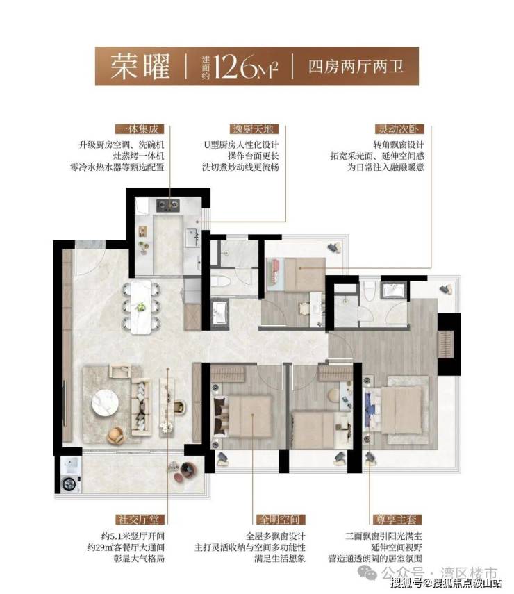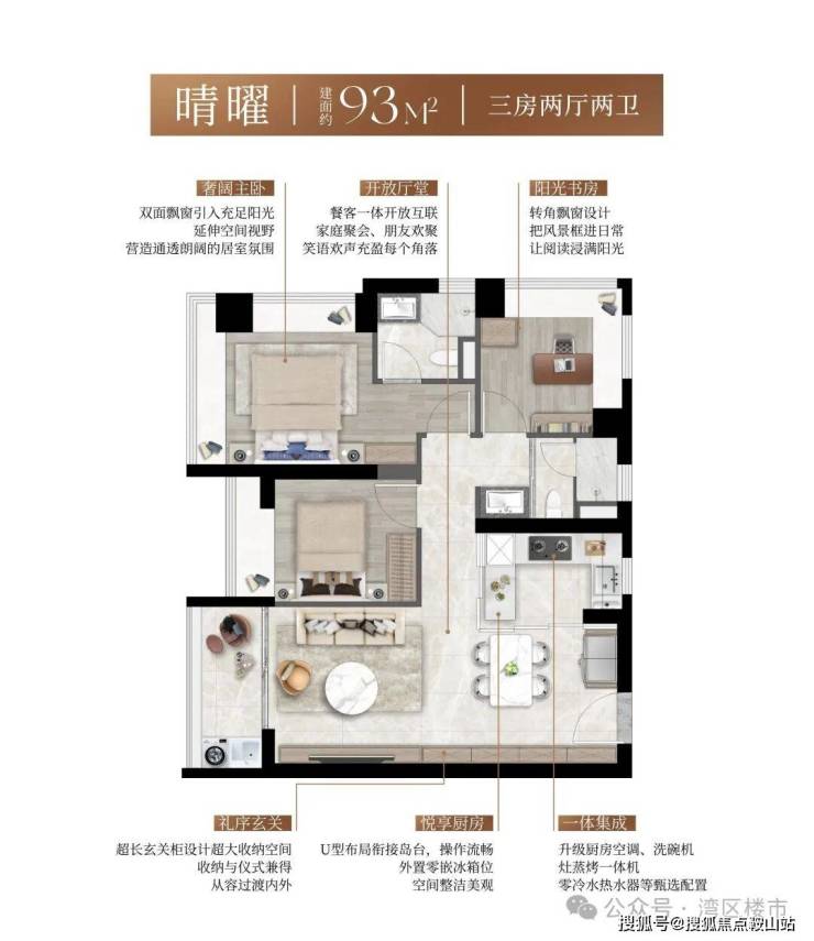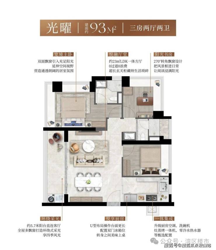 全南向户型社区,结合阔景阳台与多面飘窗,形成三面超长采光面,实现“阳光全屋覆盖”。