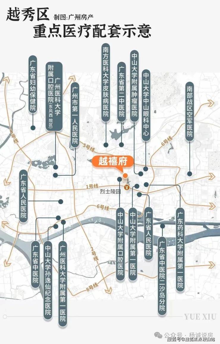 项目坐落于广州越秀区核心医疗圈,周边汇聚14家知名三甲医院(车程约10分钟),占全市三甲医院总量的近40%。步行仅5分钟即可到达4所顶尖医疗机构: