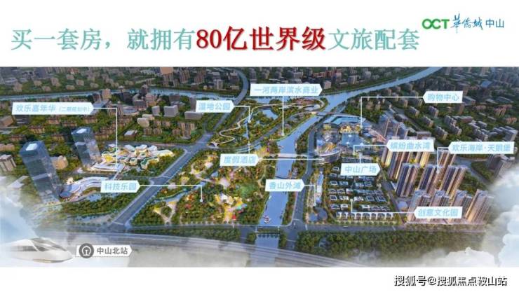 项目距离中山北站和北外环等交通枢纽近,步行可享受文旅综合项目的休闲娱乐设施。
