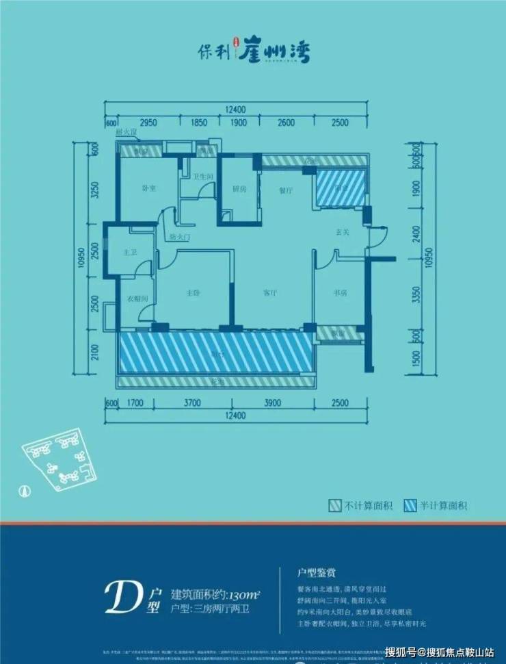 🏖D户型130㎡三房两厅两卫