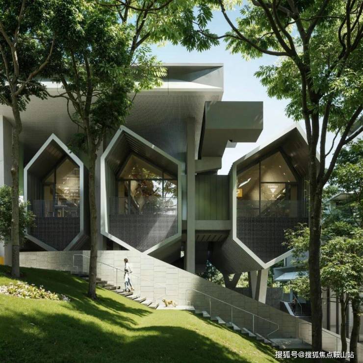 依势而建”的宏观策略带来了多重地面和多个庭院,OPEN 把这种复杂性塑造成多样化的空间,以适应人群的不同需求。住区内部顺应地势设立四个不同标高的庭院空间,每个庭院独具特色,共同构筑不同场景的生活氛围,承载多样的社区功能。人们可以在住区里观山看海、散步溜娃、遛宠物、观草木、听鸟鸣等等,有很多去处和可能性,在不经意间邂逅邻人,停下来交流,或者因为共同的兴趣建立新的联系。