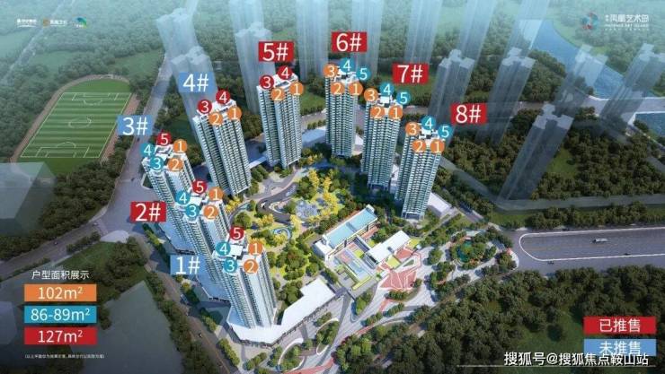 13.住宅在售:住宅主力在售5/6栋,面积86/103㎡三房及126㎡四房;