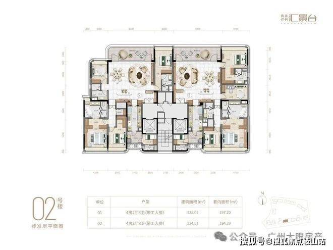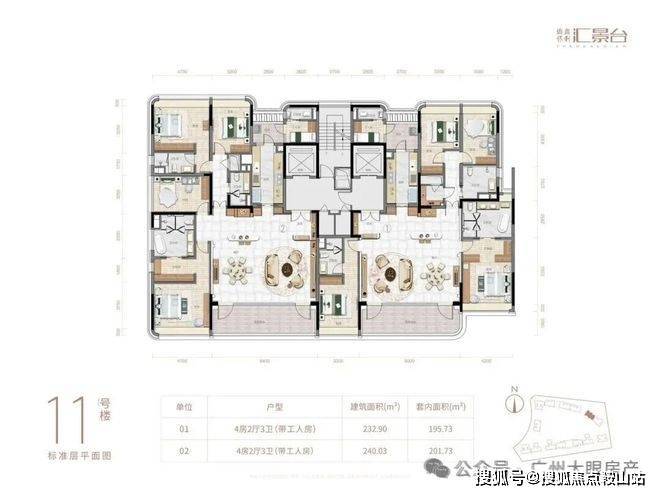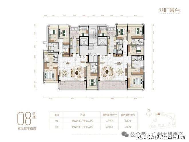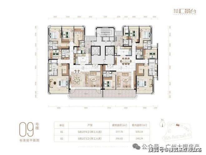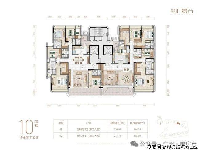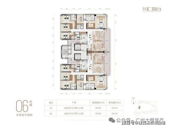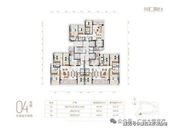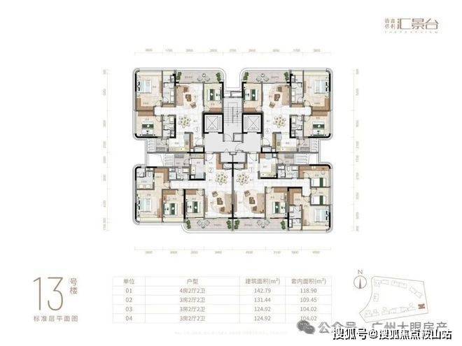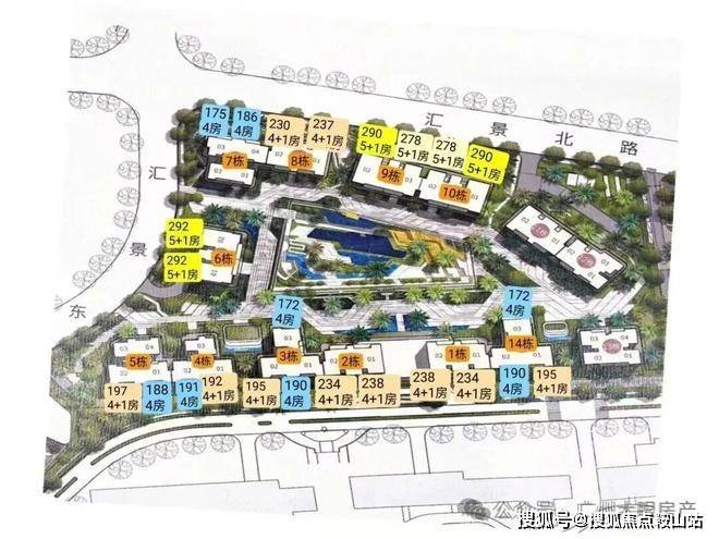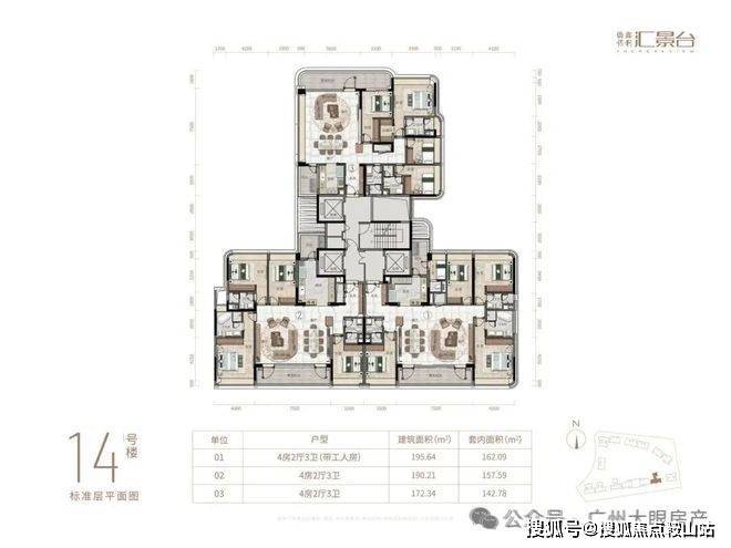 项目由14栋12层小高层组成,产品涵盖123-352㎡三至五房,共8类户型,户型实用率约82-84%