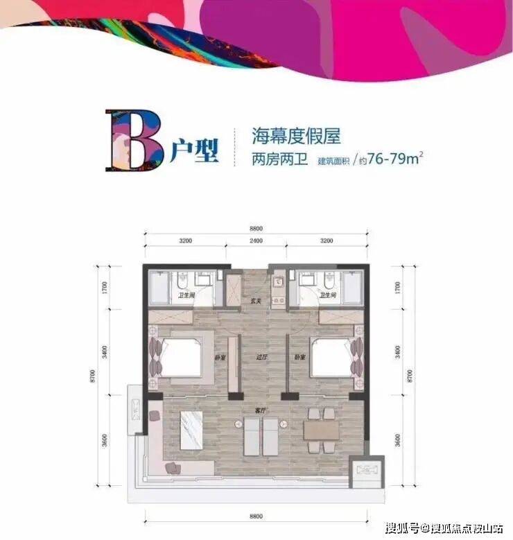 万科·双月湾目前在售产品为42㎡单房、80㎡两房。