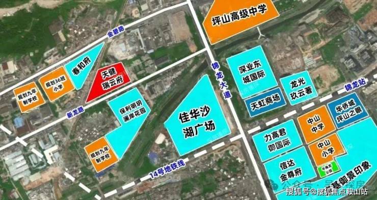 春和府,位于坪山区坪山街道金碧路和沙湖路交汇处,南靠清湖路、北临金碧路和T2云轨站点,西近沙湖路,项目规划一所36班小学,14号地铁线“锦龙站”距离约2公里。
