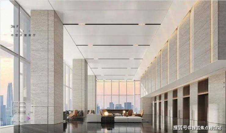 约250米云端商务封面资产,双大堂配置(约16米挑高阔绰首层大堂 、36层约9米挑高空中大堂),25部国际一线品牌奥的斯电梯, LOW-E双银中空超白夹胶玻璃幕墙。
