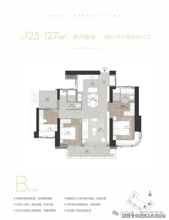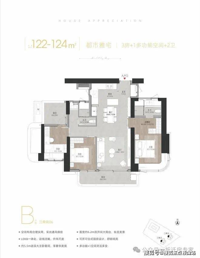 B 户型(双龙抱珠户型) ,西北朝向 122-124 平(06 ):可看绿地公园、花园