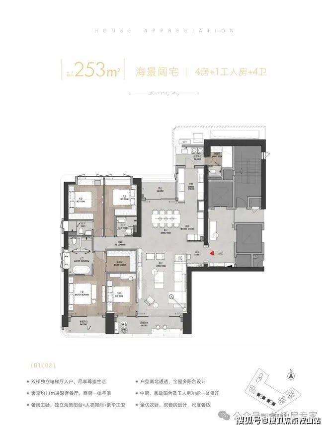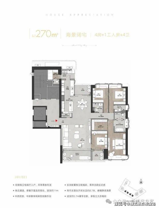 183㎡4房2厅3卫,253-270㎡4房2厅4卫+工人房。