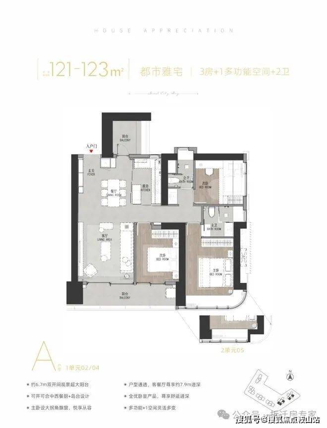 A 户型(竖厅户型),西南朝向122-124 平(04、05):可看红树林湿地、海景