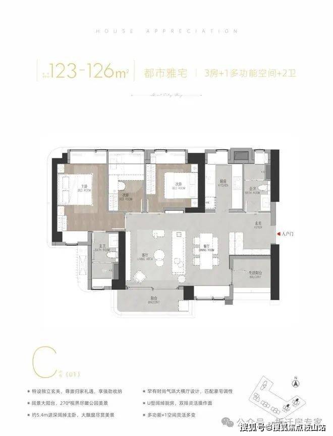C 户型(横厅户型),东西通透 124-125 平(01):可看绿地公园、花园