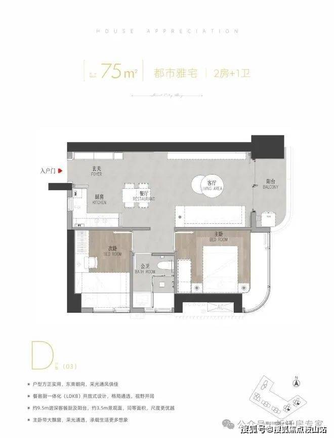 D 户型 ,东南朝向 111 -112 平(02、03):看城市景观