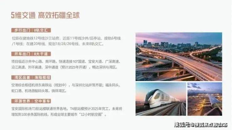 紧邻空港综合枢纽机场东高铁站(规划中),与深圳北站并驾齐驱;福永码头、蛇口港、机场游艇码头等,徜徉湾区各地。
